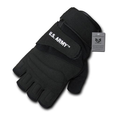 Studio : Rapid Dominance Publisher : Rapid Dominance Binding : Sports Product Description Army licensed Half Finger Tactical Gloves feature a Palm made of Synthetic Leather with rubber padding, knuckle includes foam padded plate and knuckle guard. The back has an Army Star rubber patch and is made of 50-Percent 4-way Stretch and 50-Percent Synthetic Leather and has a hook and loop closure. 0