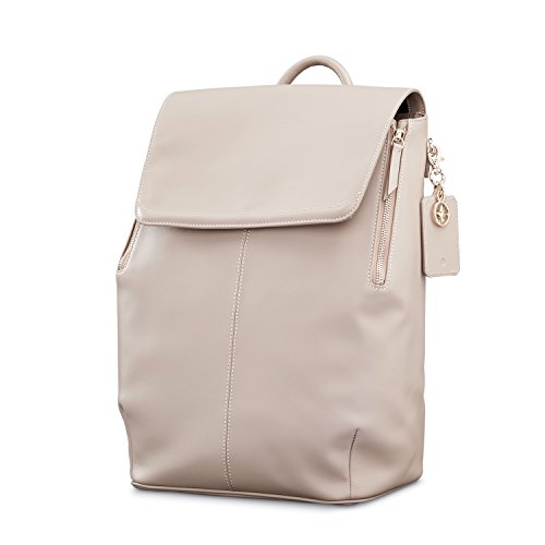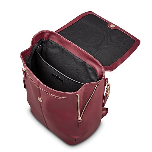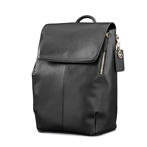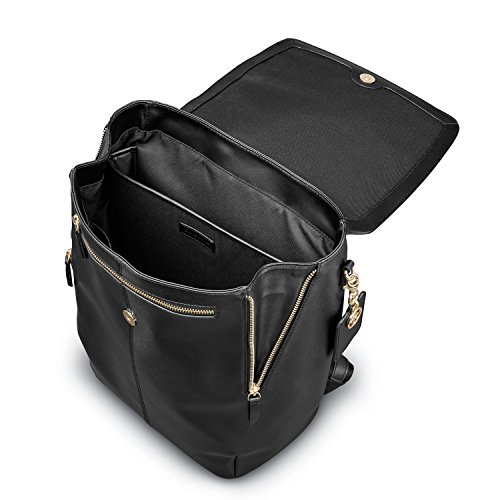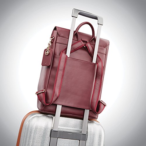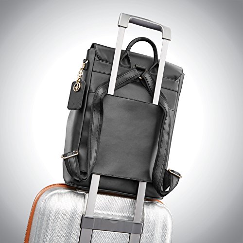 Studio : Samsonite Publisher : Samsonite Product Description A chic statement, the Hamptons Backpack is perfectly sized for the office and on-the-town essentials, the ideal style for a savvy commuter. ? Top grain smooth leather.? Side zippers expand the top opening, providing easy access to the main compartment.? Hidden zip pocket, under the flap, adds convenient and secure accessory storage.? Pass-through sleeve accommodates most luggage handles, on-the-go travel.? Adjustable, leather accented, shoulder straps provide a custom and comfortable wearing experience.? Metal feet protect the leather base against wear.? Removable, leather tag with integrated missor and signature compass charm, offer the perfect at-a-glance accessory.? Padded tech sleeve fits up to a 14" laptop or up to a 9.7" tablet.? Two accessory pockets provide interior storage for smaller essentials.? Dust cover is included for protection and storage.? Weight: 2.6 lbs.Body Dimensions: 16.5" x 11.8" x 6.3"Overall Dimensions: 16.5" x 11.8" x 6.3" 0