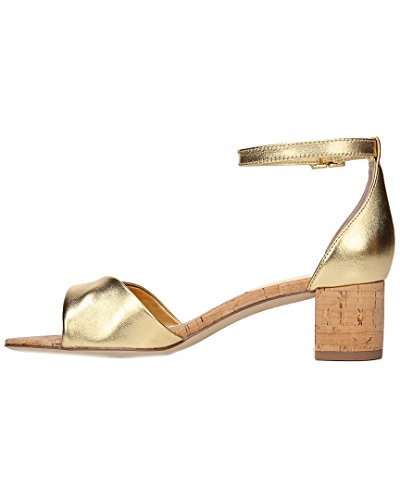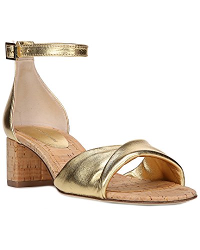 Product DescriptionColor/material: gold metallic leather. Buckle closure. Padded insole. Cork sole. 1.77in heel. Imported0