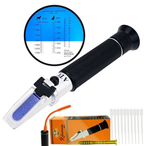 Kibeland Portable Clinical Refractometer with ATC for Urine specific gravity RI Measurement of Pet Dog Cat 1.000-1.060RI and Blood Serum Protein 2-14g/dl, Free LED light and Pipettes