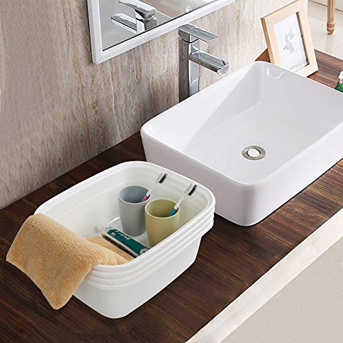 Eagrye Rectangular Plastic Dish Pan/ Wash Basin, 15.23-Inch x 12.12-Inch x 5.51-Inch, Set of 4 (White)