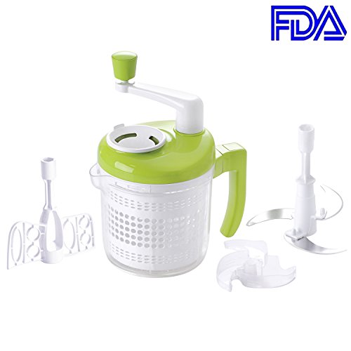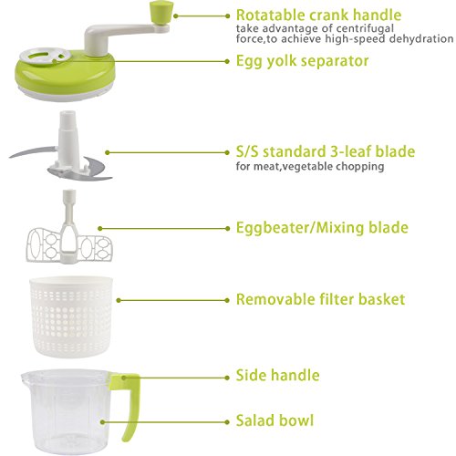 - MULTIFUNCTIONS-- Egg separator, eggbeater, salad spinner, manual chopper, meat mincer, blender