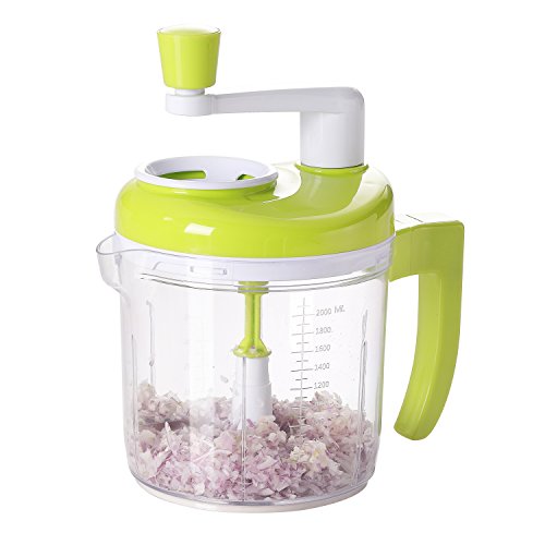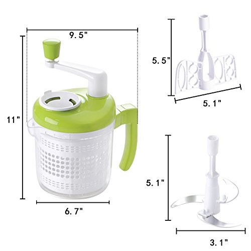 Smile mom All-In-One Plastic Kitchen Food Processor Vegetable Chopper Salad Spinner Egg Seperator Eggbeater, Measuring Cup, A385, Green-White