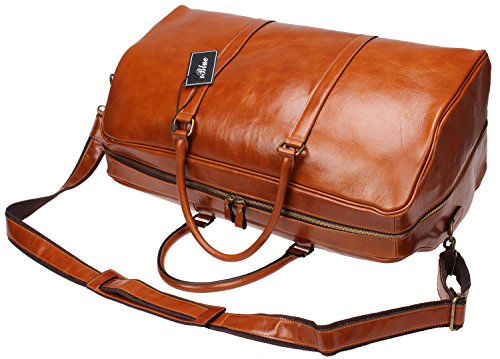 -. Feature : ✔Quality Warranty- The Genuine Leather Weekend Bag Have 3-Year Warranty. / ✔Material- Thick Genuine Leather, Large Double Zipper, Superior Quality Threads. / ✔Perfect For 3-5 Days Trips- Fit Lots Of Travel Needs, Whether Clothing Articles,Towels,Toiletries And Electronics. / ✔Dimension- 22 In L X 8 In W X 11 In H,Size Is Perfect For Daily Life Weekend Overnight Trip Or Carry On For Excesses Things To Bring Back. / ✔Zipper Opens To The Bottom- Note That The Zipper Opens From The Top In Both Directions And Goes Down To The Base.