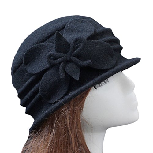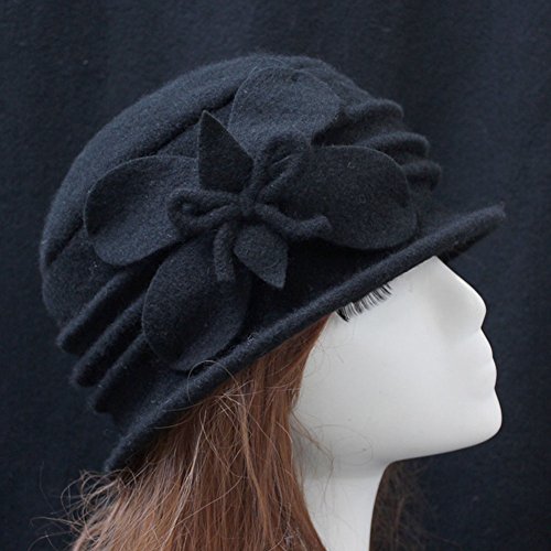 (Ealafee)/Accessories/Hats/DIRECT FROM USA/Ealafee Women 100% Wool Solid Color Round Top Cloche Beret Butterfly Fedora Hats