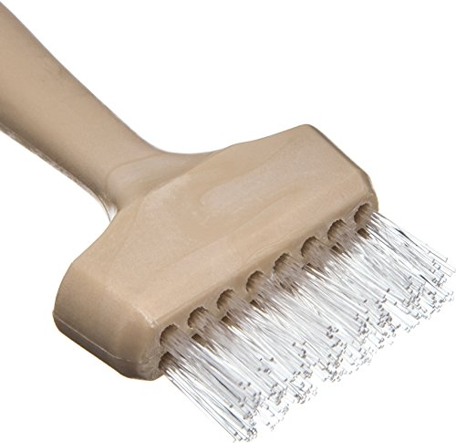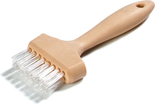 Studio : Carlisle Publisher : Carlisle Binding : Misc. Product Description Carlisle Teflon waffle iron wide brush. Teflon bristles offer long term economy. Outlast and out-perform Nylon, plastic, and natural Boar bristles in high heat applications. Has extra stiff Teflon bristles for cleaning waffle irons, griddles, and grills while still hot. 7-inches length. Made in USA. Used for basting and cleaning on hot griddles and iron. Perfect for Panini grills. Stiff Teflon bristles withstand temperatures to 500 degree F. Plastic handle provides a cool touch. 1-inches bristle trim, 3-inches bristle width. Made in USA. 0