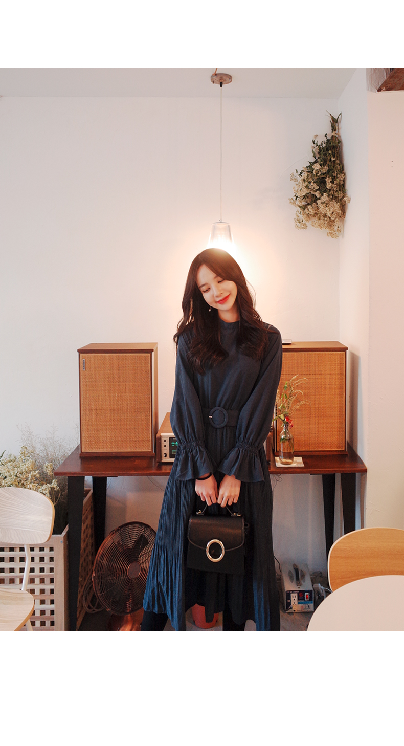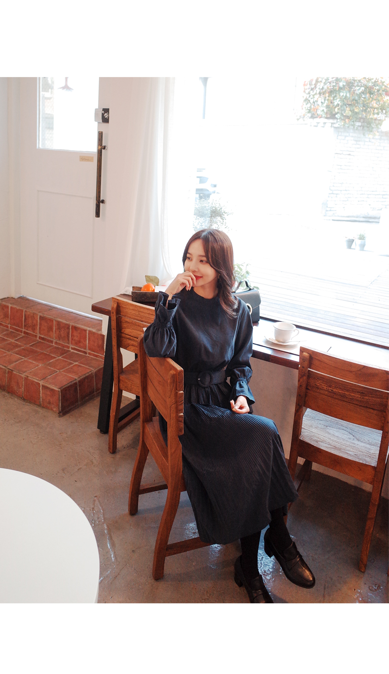 하이넥 스타일로 깔끔한 넥라인과 스커트 부분이
