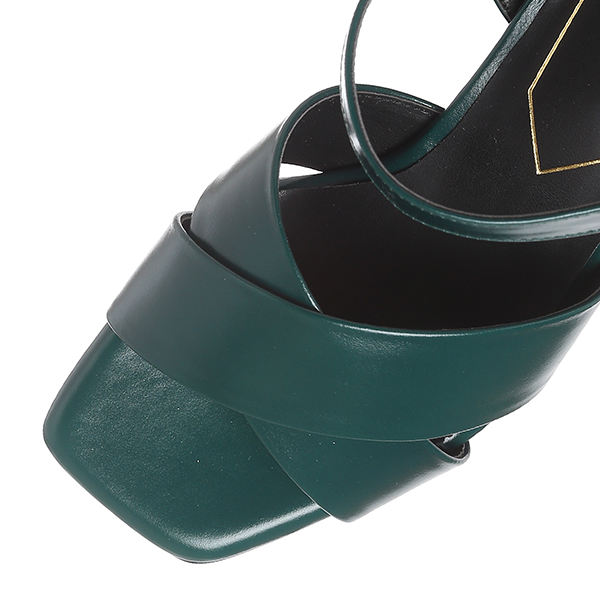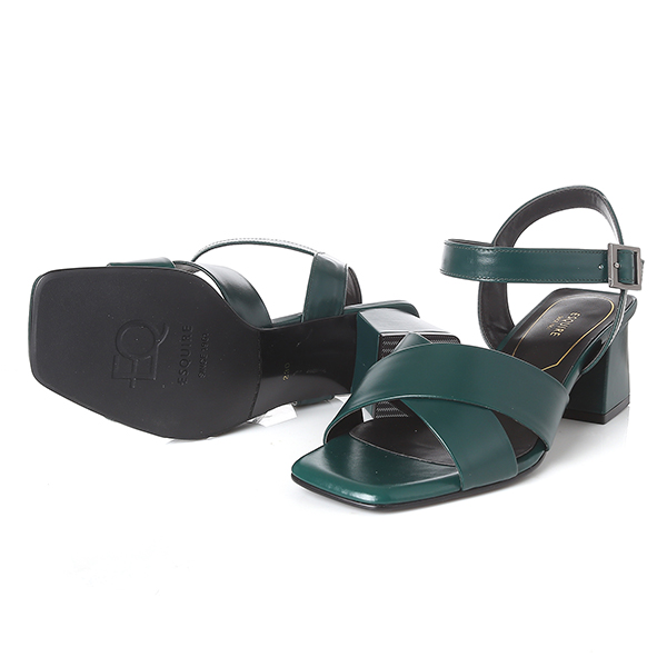 은은한 광택의 고급 소가죽을 사용한 신규 모던라인의 샌들. X스트랩은 발볼을 안정적으로 감싸주고, 청키한 굽은 발목의 흔들림 없이 착화가 안정적임. 버클 안쪽의 탄력밴드가 있어 신고 벗기 편함.