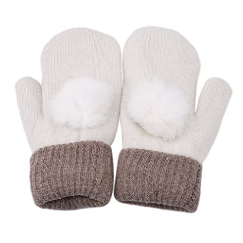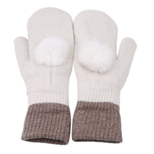 SONG LIN Double-Layered Warmer Winter Wool Gloves Soft Winter Gloves with Fur Ball For Girls Wo...