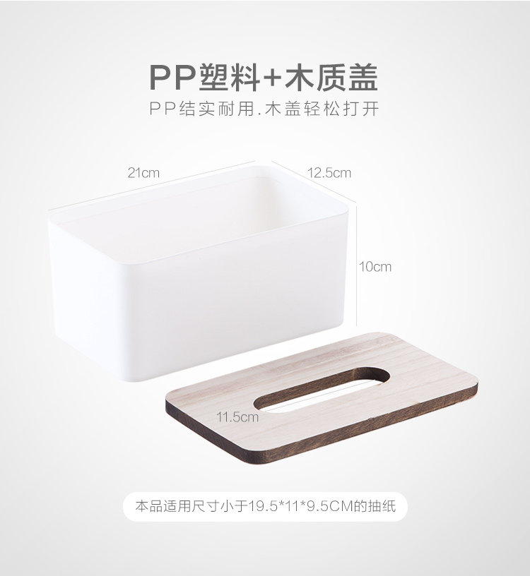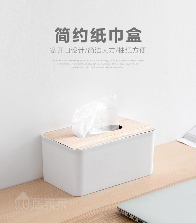 Summary: Simple tissue box, rectangular + wide opening design, simple and elegant, convenient pumping; wood cover easily open, into the pumping paper can be used; PP + wood material, durable, living room / kitchen / vanity / Available.