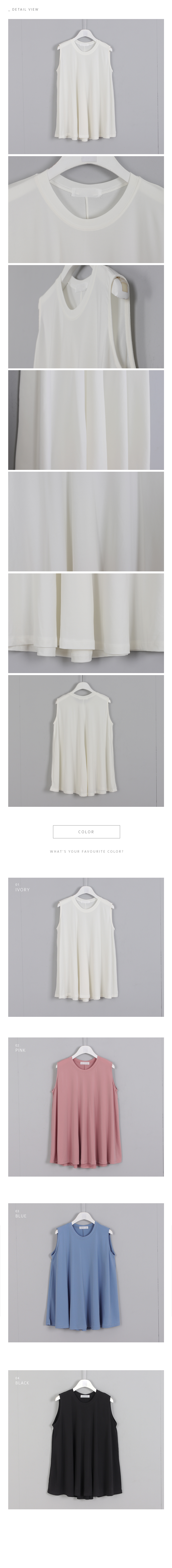 찰랑찰랑 풍성하게 플레어 지는A라인의 핏이 예쁜 탑이에요매트한 질감과 예쁜 컬러톤으로실용적인 소재감이 편안한 아이템이랍니다스커트, 팬츠등 다양하게코디하기 좋은 아이템으로 추천해드려요색상은 아이보리, 핑크, 블루, 블랙사이즈는 FREE 44~66반▼ 관련상품 : 차르르 야자수 와이드팬츠돈나 와이드 코튼 팬츠