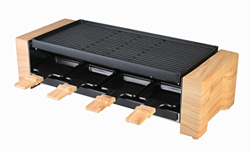 Electric Raclette Grill with Cast Aluminum Reversible Grill Plate by Artestia, Separate Heat Source for Plate and Side Dishes, Serve the whole family. Model number AR-89006