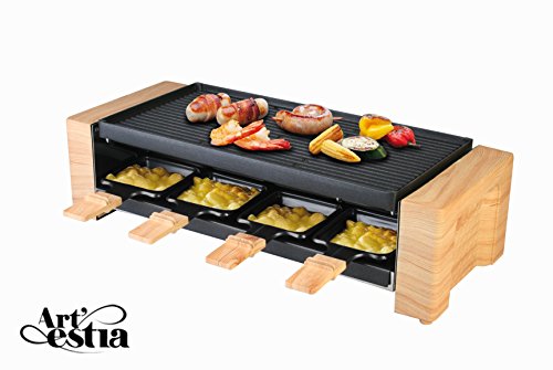 ★ Electric Raclette Grill with Cast Aluminum Reversible Grill Plate by Artestia, Separate Heat Source for Plate and Side Dishes, Serve the whole family