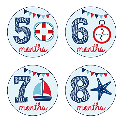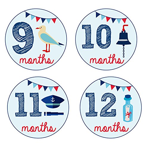 Pinkie Penguin Baby Monthly Stickers - Nautical Theme - Baby Boy - 1-12 Months - Milestone Onesie Stickers -Baby Shower Gift