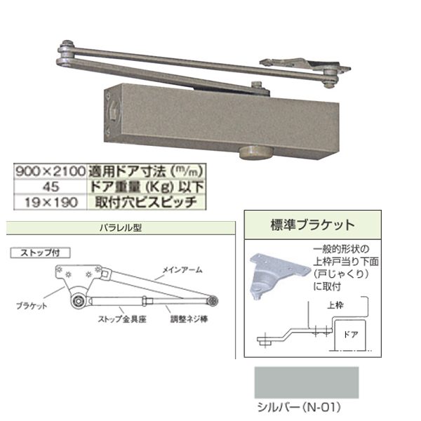●仕様:パラレル型・ストップ付(ストップ角度70~180°)・ドア重量45kgまで