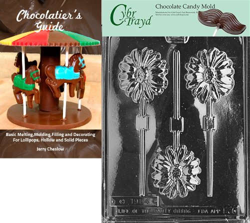 Cybrtrayd "Long Stem Daisy Lolly" Fruits and Vegetables Chocolate Candy Mold with Chocolatier's Guide