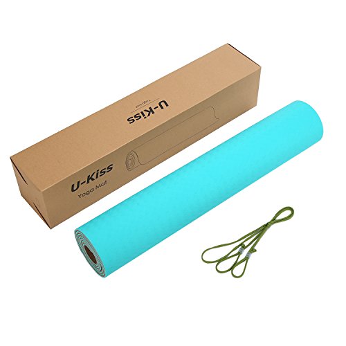 U-Kiss Exercise Yoga Mat -71.7" x 28.1" ,High Density TPE Double Layer Durable Hot Pressing High Density Anti-Slip Nontoxic Comfort Yoga Mat with Carrying Strap for Pilates Yoga Fitness and More