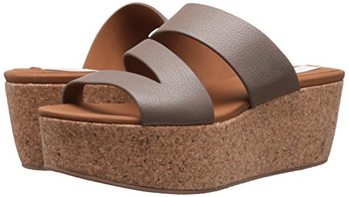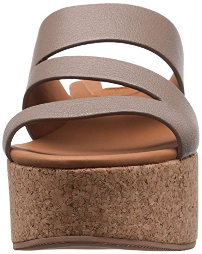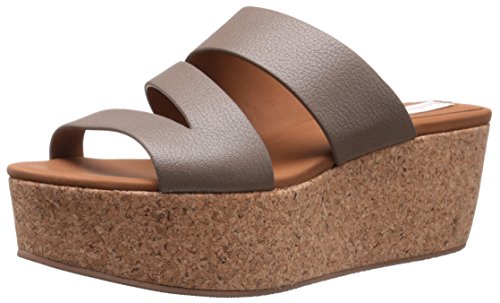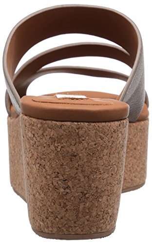 Platform sandal with cork wedge heel featuring leather straps and slip-on styling