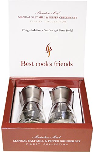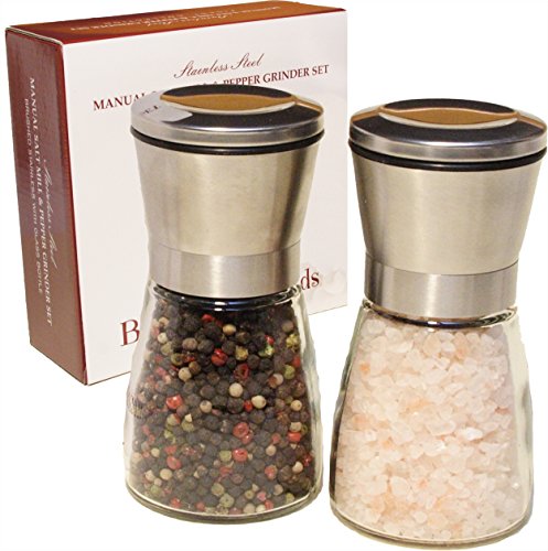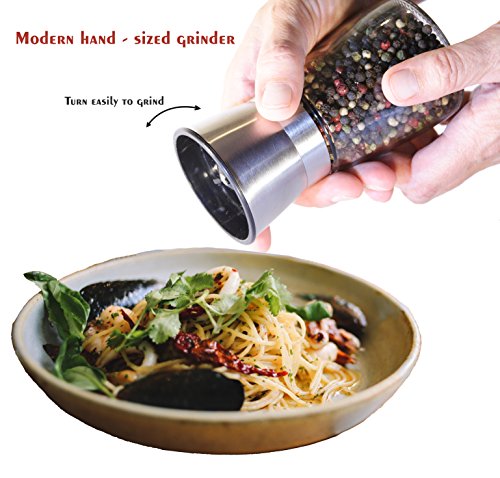 - Keep the decisions in Your hands; adjust the grinding mechanism on your salt and pepper grinder to get the finneness You prefer! Please note: The salt and pepper grinder set do not come filled with spices; you're free to choose your own spices.