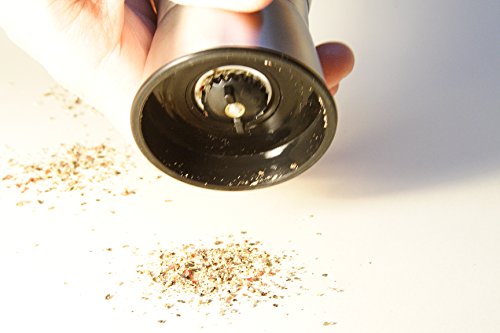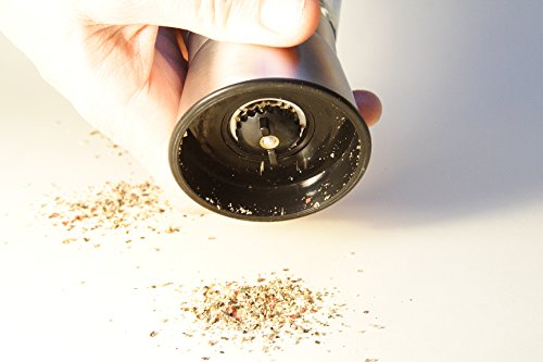 - Allways available; manual operation and no batteries required. Simply turn the top section of salt and pepper mill to grind hymalain or sea salt, peppercorn or other spices.