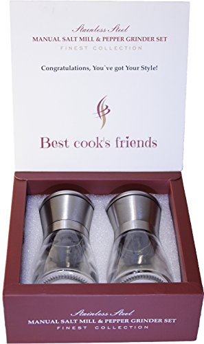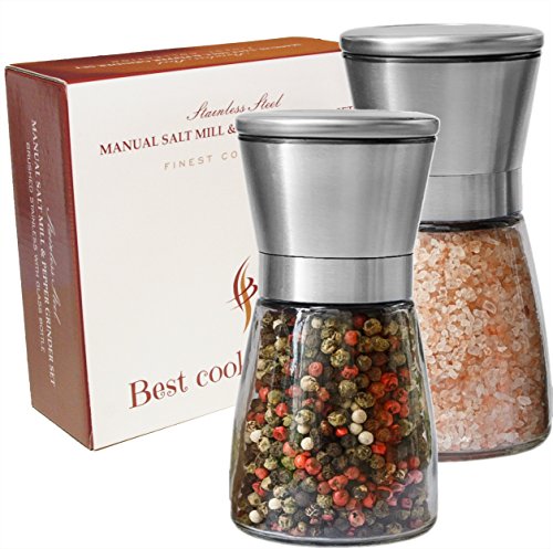 - Use only the best; healthy, clean, long lasting and nice supplements to your kitchen. Salt and pepper grinders are made of clean glass jars, brushed Stainless steel and strong Ceramic grinding core. Long lasting materials that won`t get the colour or the smell of the spices.