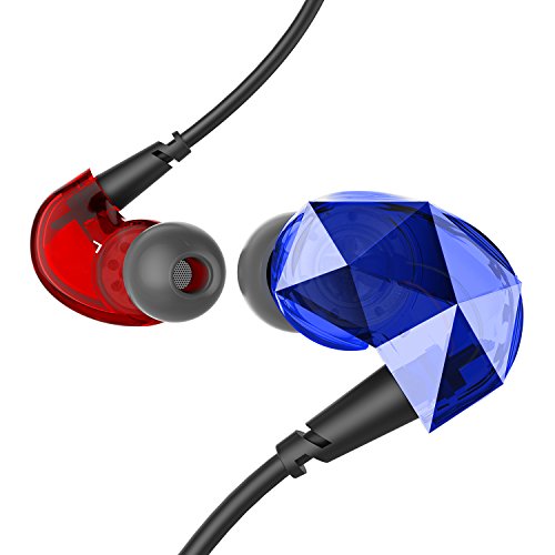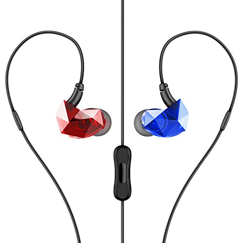 Sound Intone E6 Pro In-ear Headphones Sweatproof Sports Running Earbuds Noise Isolating Earphones with In-line Mic and Remote Control for Cellphones PC MP3 etc (Blue/Red)