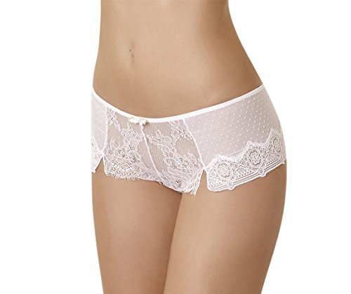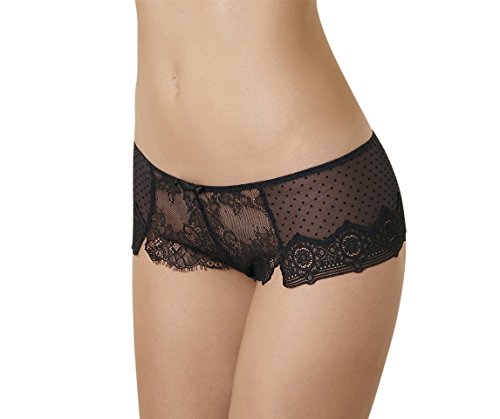 Immer positiv, temperamentvoll und frech: Passionata ist pure Lebensfreude! Die Serie Belle De Jour kombiniert hochwertige Materialien mit alltagstauglichen Passformen und bringt Glamour in den Alltag. Eine romantische Shorty, die durch Spitzen-Patchwork besticht. Seitlich und hinten besteht die Shorty aus Punktchentull, der Beinausschnitt ist mit einer grafischen Spitze verziert. Im vorderen Bereich ist zusatzlich die florale Eyelash-Spitze verarbeitet worden. Ein kleiner Schlitz vorne am Bein und die kleine Schleife runden den romantischen Look der Shorty ab.