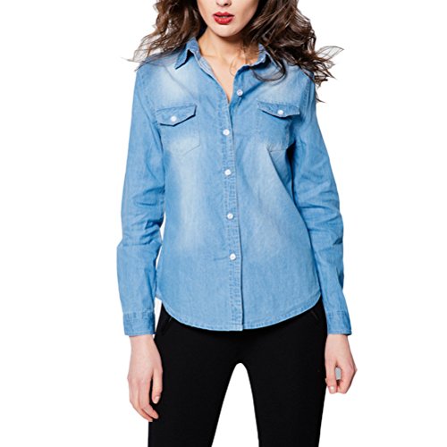 -. Binding : ウェア&シューズ -. Brand : Zhhlaixing -. Department : レディース -. Feature : Very stylish denim shirt. / High quality material and more comfortable. / Both simple and beauty. / Fashionable and popular style for womens. / Dear friend,Asian size running small.When you place the order,please check your size carefully.The size info is in the picture. -. ProductGroup : Apparel -. ProductTypeName : SHIRT -. Title : Zhhlaixing 美しいシャツ Classic Elastic Denim Shirt Temperament Lapel Slim Long Sleeve Cardigan Jacket for Women
