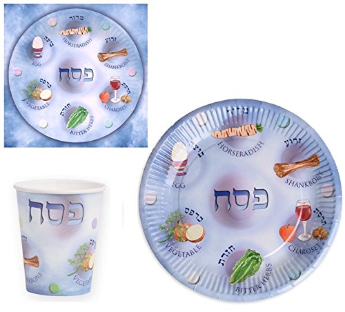 Set of Disposable Paper Plates, Paper Cups and Biodegradable Serviettes for Passover by Rimmon