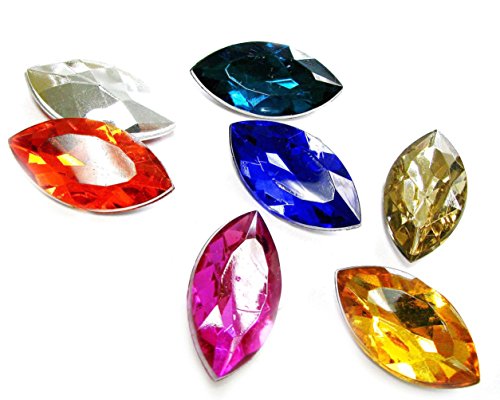 Linpeng Acrylic Gems-HE-5 7 Piece Faceted Horse Eye Shape Acrylic Gem, 18mm x 32mm, Assorted