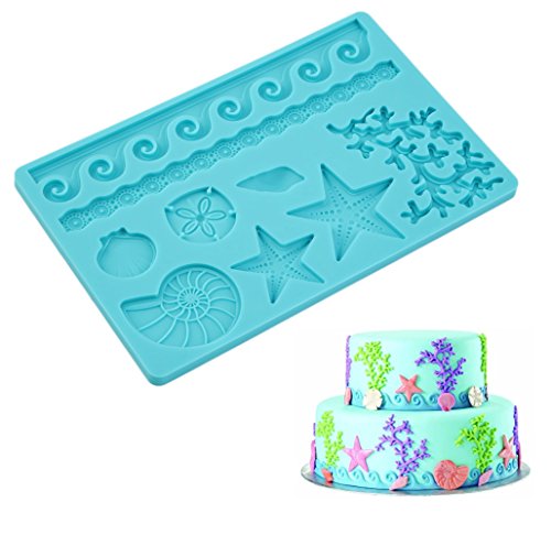ELINKA Silicone Seashell Sea Life Fondant and Gum Paste Candy Cake Baking Mold For Cake Decorating Sealife Style Starfish Molds