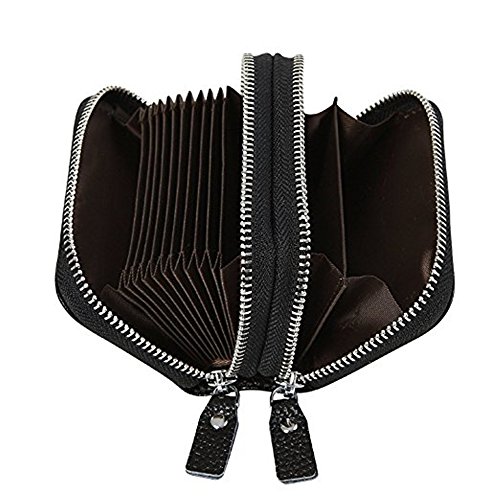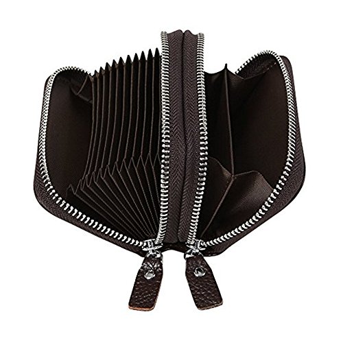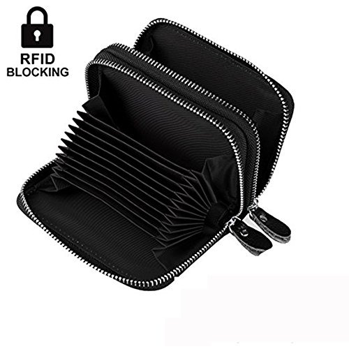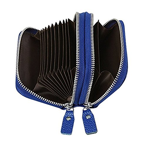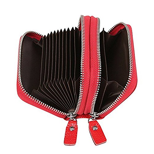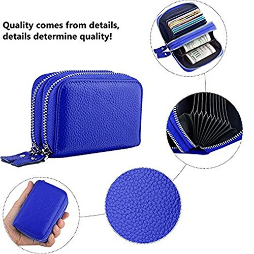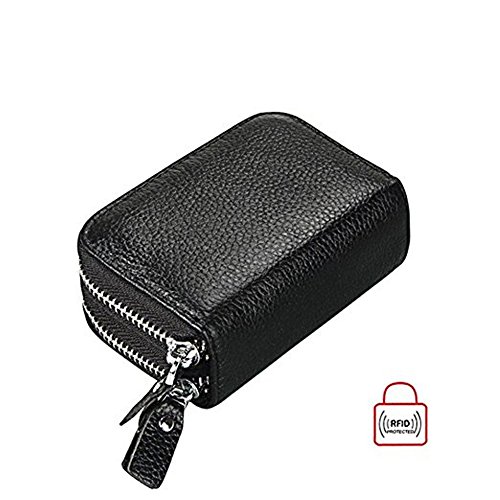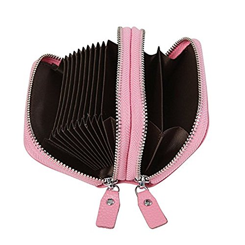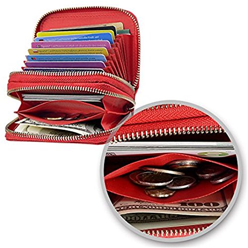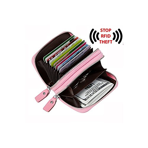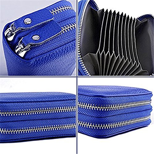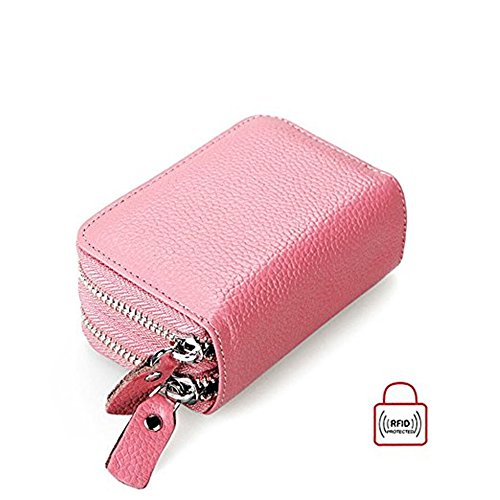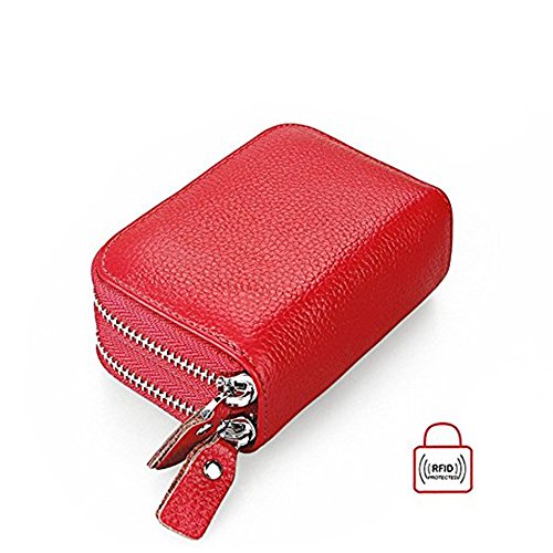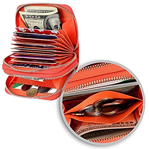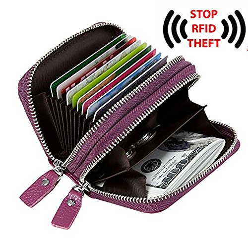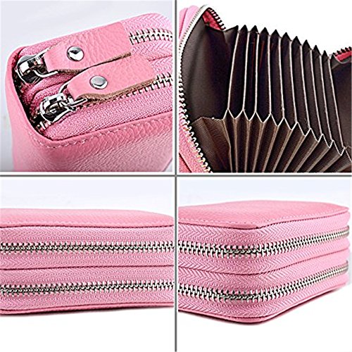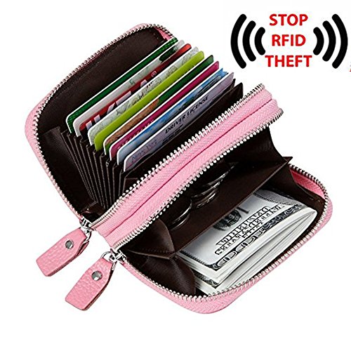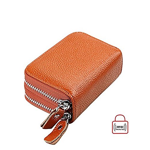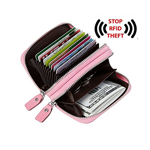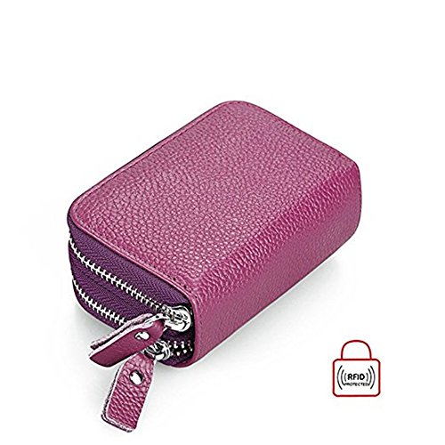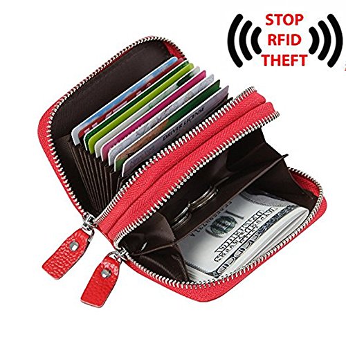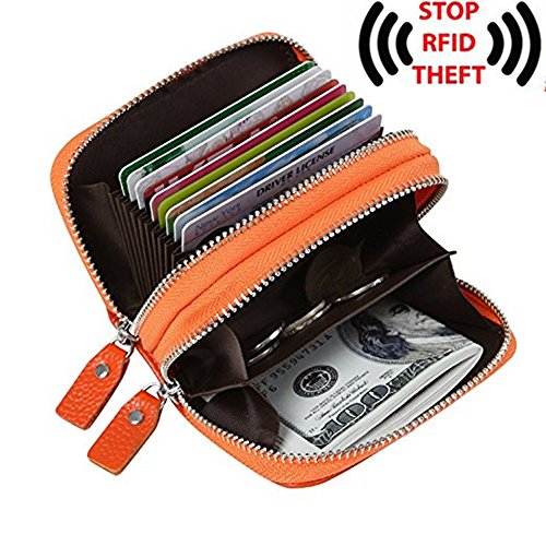 RFID Blocking Genuine Leather Zipper Credit Card Case Wallet for Women