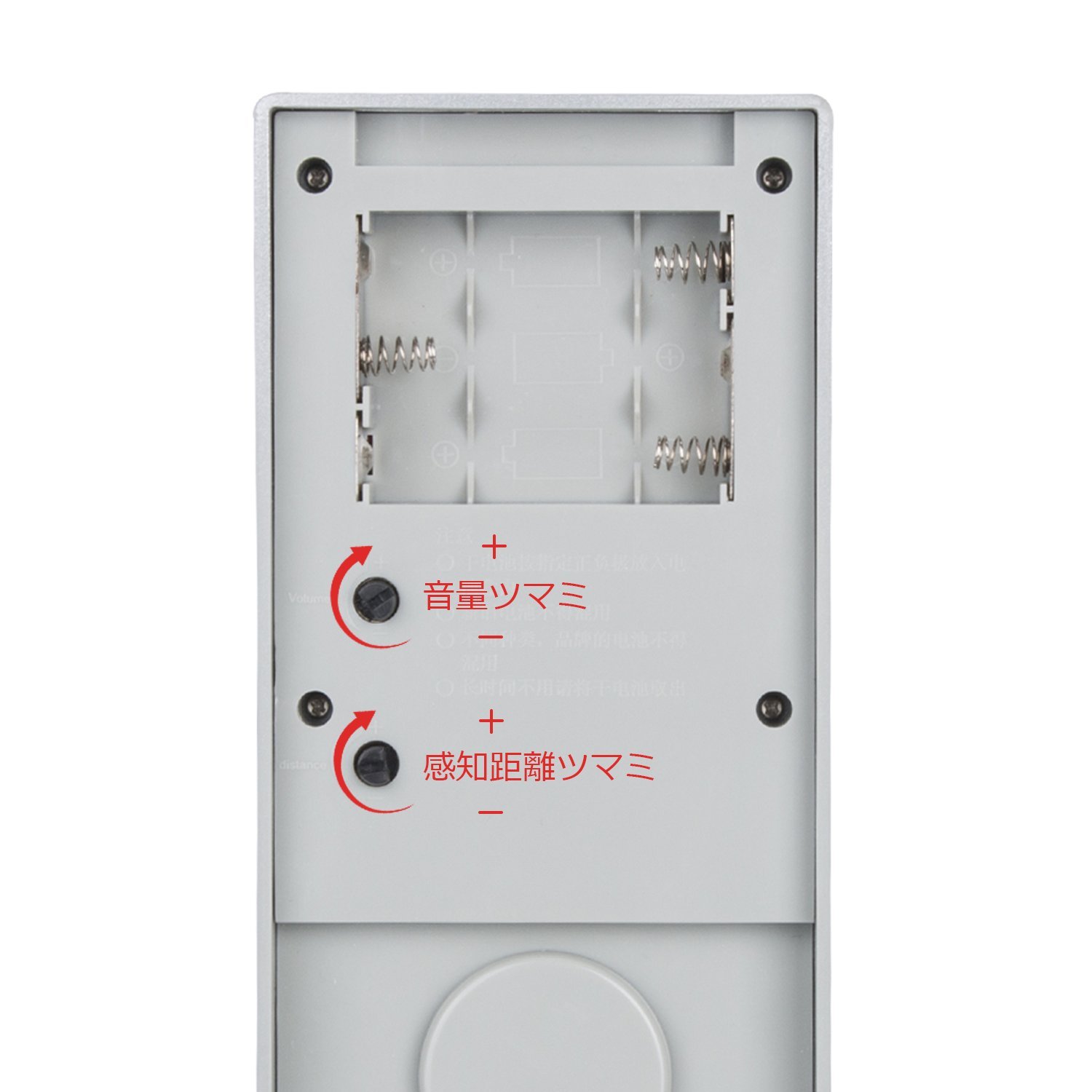There is a volume knob and a sensing distance knob on the back, and it is possible to set it freely.