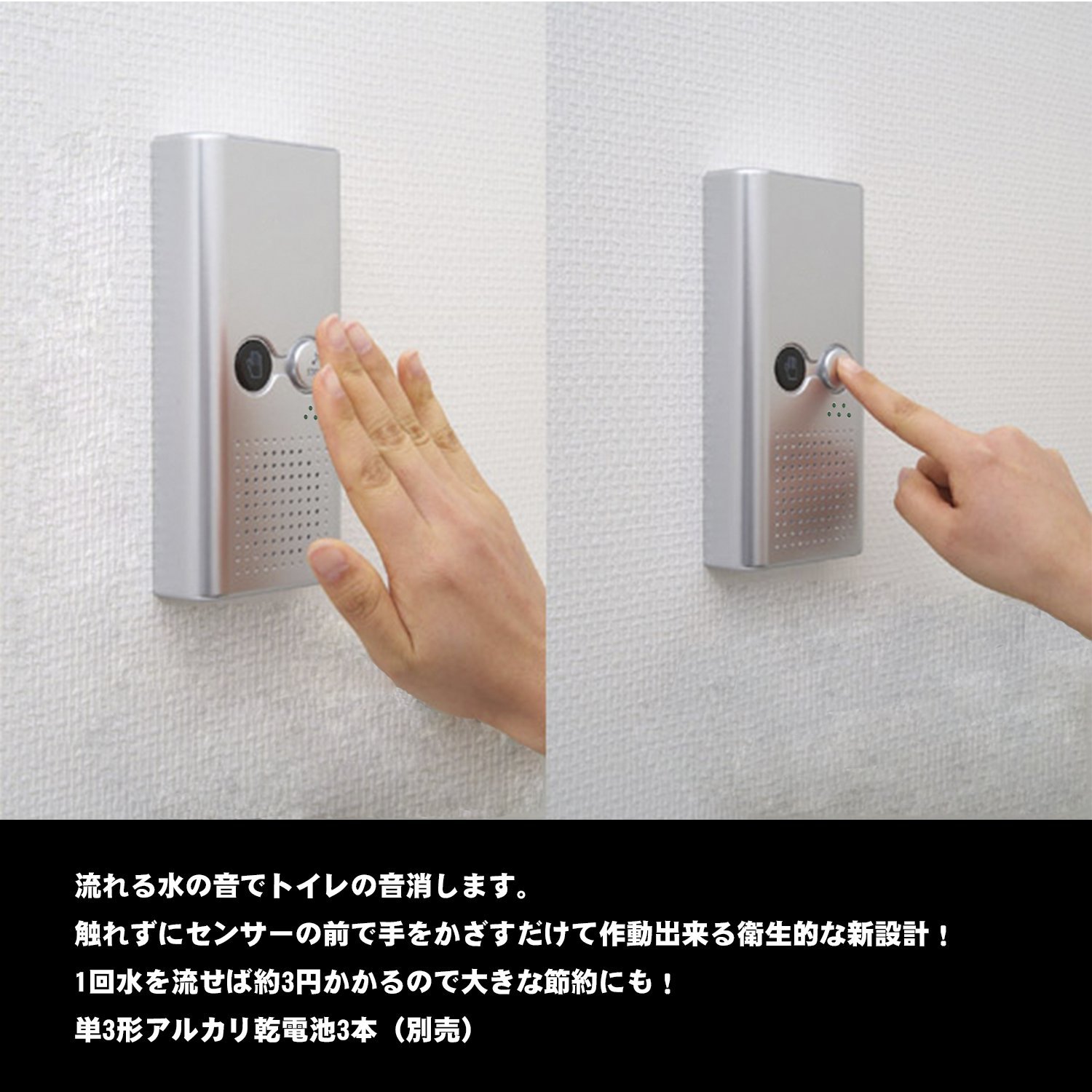 You can use it hygienically because it generates and stops the sound of the flowing water just by waving your hand in front of the sensor.