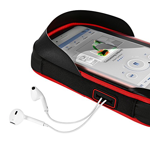 Studio : Idea Publisher : Idea Product Description Materia:High qualit TPU Color:black-red Bag size:7.5 x 4.2 x 2.4 inches Weight:7.4 ounces Apply:Mobile phones under 6 inches Features Sunshade design waterproof design 360 degree rotation side opening TPU touch screen earphone hole design Advantage 1.360 Degree Adjustable Mount 6'New Material Protective Film 2.Water Resistance Pouch Rubber Zipper Sun Visor Weather sealed pouch case and zipper make you don't need to worry about rain, dust, mud, even the high intensity sunlignt 3.Little Sweet Design For Headphones Cables A hole on the right side of the phone case enable you listen to your favorable music during riding, and also you will not miss any important phone call 4.More Protective Easy To Install Aad Remove Non-slip rubber grip cradles of the bicycle phone mount holder offers advanced protection for your device against any accidental falls. It will protect your device on your thrilling bicycle journey perfectly 0