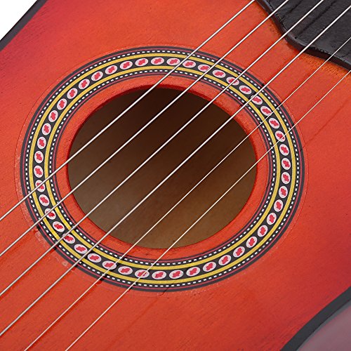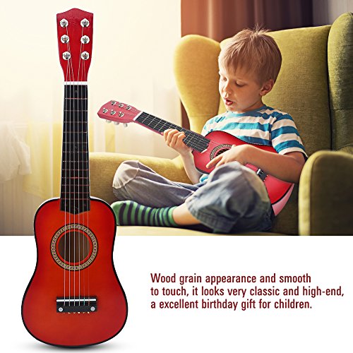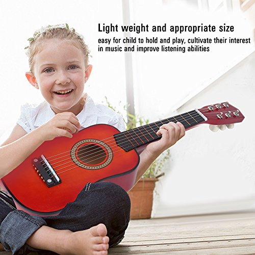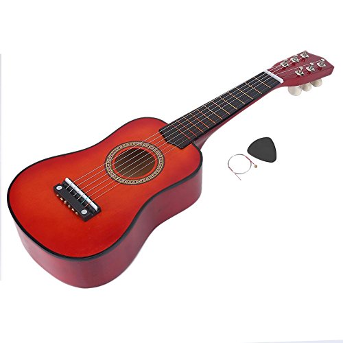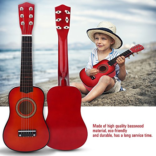 Studio : Vbestlife Publisher : Vbestlife Product Description Features: Made of high quality basswood material, eco-friendly and durable, has a long service time. Light weight and appropriate size, easy for child to hold and play, cultivate their interest in music and improve listening abilities. With beautiful and full timbre, the mini guitar can attract the interests of kids, and reduce their dependency on phone, computer, or other electronics. Wood grain appearance and smooth to touch, it looks very classic and high-end, a excellent birthday gift for children. Also great for cultivating parent-child relationship, just enjoy joyful time of music at anytime and anywhere. Specification: Condition: 100% Brand New Main Material: Basswood Color: Pink, Red Brown (Optional) Size: Approx. 53 x 16.5 x 7cm / 20.87 x 6.5 x 2.76inch Weight: Approx. 456g Package Included: 1 x Guitar?(Other Accessories are Not Included) 1 x Pick 1 x String Note: Please allow slight deviation for the color and measurement. Thanks for your understanding.