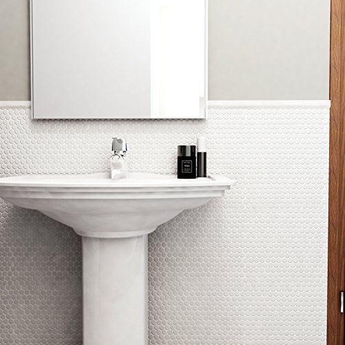 SomerTile FDXMPMW Retro Penni Porcelain Floor and Wall Tile, 9.875" x 11.5", Matte White