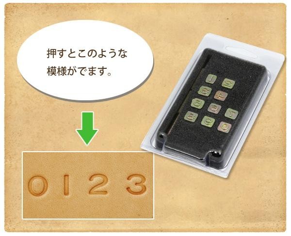 数字(0~9)10種類の刻印と、1/4インチ・約7mm用打棒のセットです。