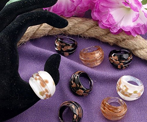 ECLOUD SHOP® 12 MURANO GOLD FOIL LAMPWORK GLASS RING 3 COLOR 17-19MM FASHION