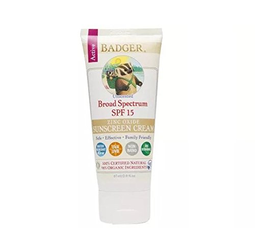 -. Title : Badger Zinc Oxide Sunscreen Cream SPF 15, Unscented, 2.9 oz - 2pc