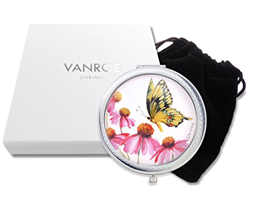 Vanroe 'Swallowtail Butterfly' Luxury Compact Mirror in Gift Box - Anniversary Present Idea, UK Artist, Magnified