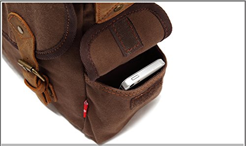 -. Feature : Main material: use of high-quality cotton canvas, high-quality imported first layer of leather and bronze metal / Structure: A total of six pockets, one main pocket, outside: two side pockets, a zippered back pocket; Inside: two open pockets and a zipper pocket. / Dimensions: 15.75'' * 4.33'' *14.96'' Capacity:16L Weight: 0.9 KG / Features: simple and elegant design, a large space that can accommodate 15.6 inch laptop; you can adjust the strap length, high-density cotton material, very comfortable; can carry a variety of methods Messenger Bag, Satchel Bag, Briefcase ; / Sechunk: All of our bags have 1-YEAR WARRANTY. Any problems with your bag, please contact us. We will solve it.