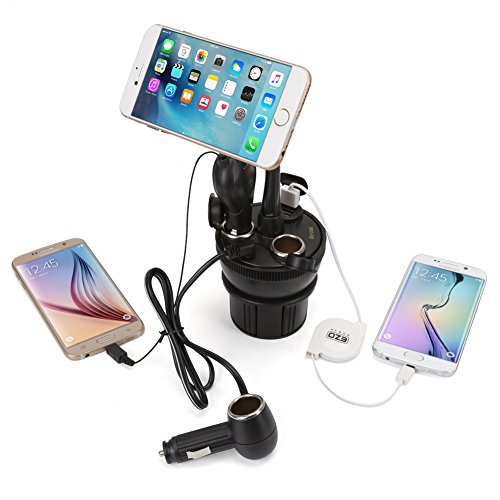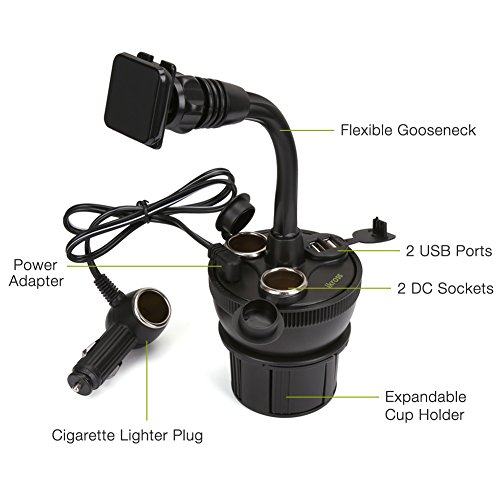 The iKross Cup Holder Mount Power Station is an ideal vehicle mounting solution for anyone who needs to charge multiple electronics on the go. Its quick and easy mounting kit is designed to fit securely into a standard cup holder, and the flexible holder neck with 360-degree swivel ball head joint allows for a perfect customized viewing angle. In addition, unlike ordinary car mount, it converts the power of a single 12-24V DC car socket into 3 car sockets and 2 USB ports, so you can still charge all your electronic devices such as your phone, tablet, MP3 player, GPS, radar detector, satellite radio or more.Adjustable and fits firmly in the cup holder for car, truck or SUV.