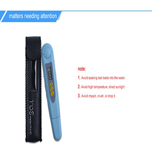 -. Feature : WIDE USE, it's great for home and laboratory uses; water, pools, aquariums, spas, hydroponics, food, wine and beer making and more. / TDS (Tatal dissolved solids) Test pen: The number is the amount of substance that is dissolved in water in an ionic state. TDS test pen used to test the water TDS value, the conductivity of water to determine the purity of water. / TDS (Tatal dissolved solids) Test pen is used to determine the sum of the inorganic soluble organic components such as anions and cations in water. The number displayed on the TDS test pen is the amount of substance that is dissolved in water in an ionic state. TDS test pen used to test the water TDS value, the conductivity of water to determine the purity of water.