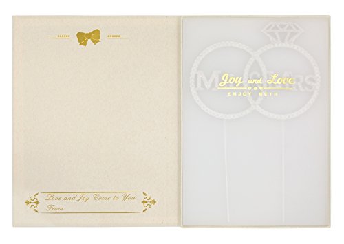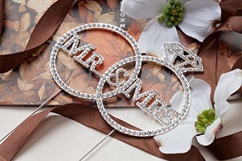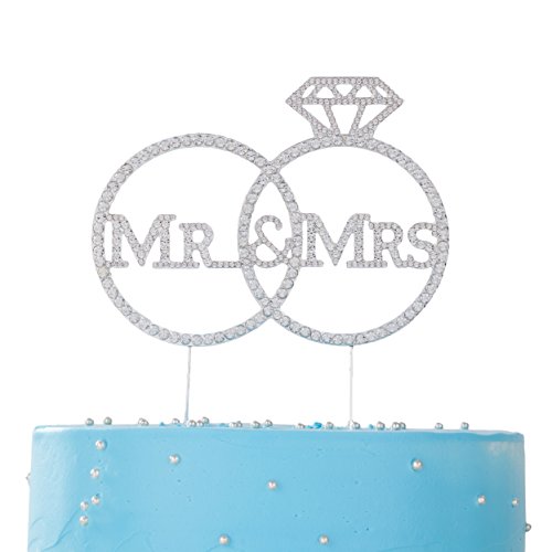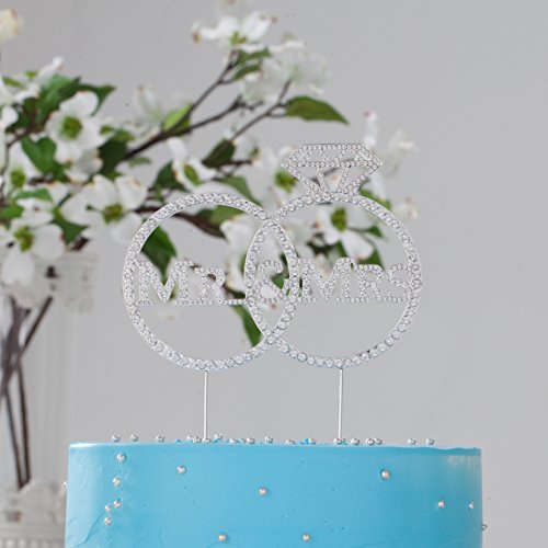LOVENJOY with Gift Box Crystal Rhinestone Mr Mrs Diamond Ring Wedding Engagement Cake Toppers Silver (5.8-inch)