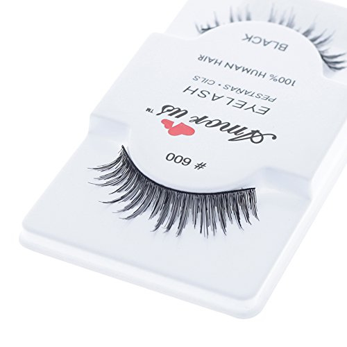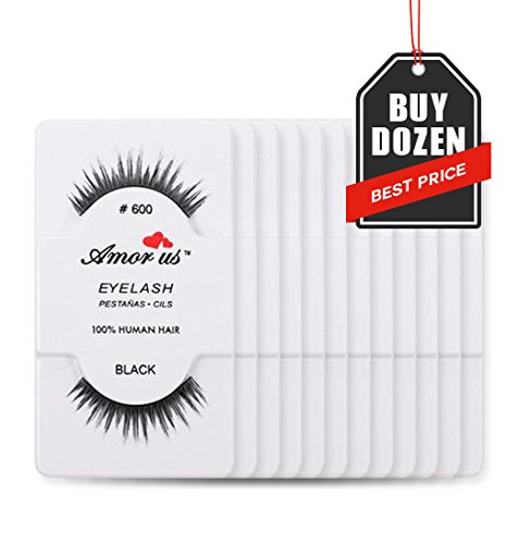 Amorus 12 Pairs Multipack #600 False Eyelashes Dozen Set 100% Natural Hair Black Handmade Comfortable Reusable Fake Lashes Pack