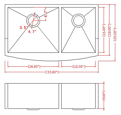 Golden Vantage 33" x 20" x 9" Undermount Apron Double Bowl Handmade 18 Gauge Stainless Steel Kitchen Sink