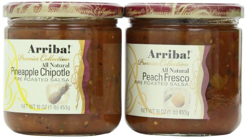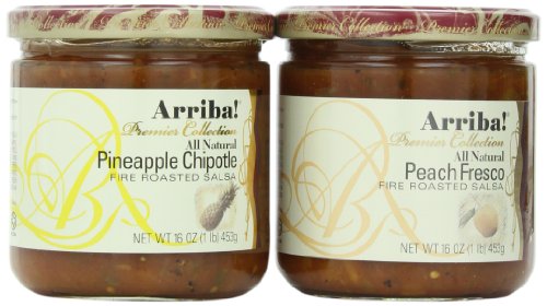 Arriba! Pineapple Chipotle Salsa and Peach Fresco Salsa Combo Pack, 16 Ounce Jars (Pack of 4)