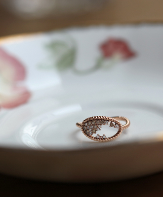 우주에 수많은 별이 반짝이듯 타원형의 쉐입안에 20개의 반짝이는 원석이 로맨틱한 링입니다. 20개의 원석을 변형하여 다이아몬드,루비,청다이아몬드로 셋팅하셔도 환상적인 느낌이 표현될듯 해요. 하나하나 섬세한 세공의 핸드메이드 텍스쳐가 더욱 돋보이는 링입니다. 레이어드 혹은 단품으로도 착용하면서 데일리 반지로 착용하시길 추천드립니다.