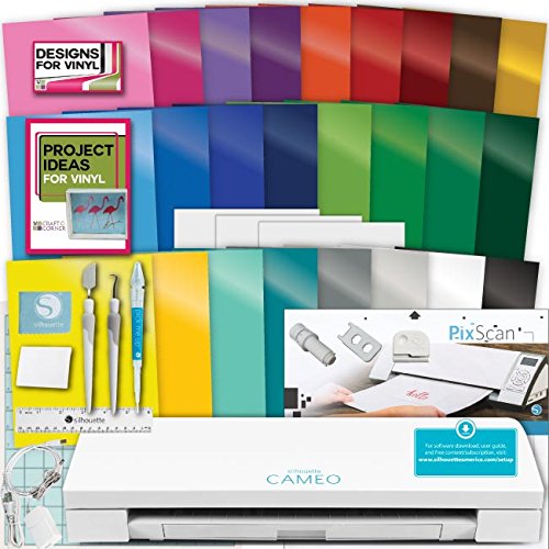 Silhouette Cameo 3 Machine Bundle Vinyl Starter Bundle- 25 Sheets Oracal 651 Permanent Vinyl with Transfer Paper, Tools, Vinyl designs, PixScan Mat